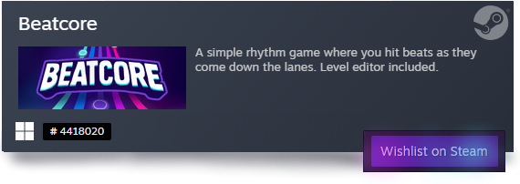 All the art and code was made during the jam, but the sound design, and game name/logo was reused from a previous attempt at making a rhythm game (it looked like this).